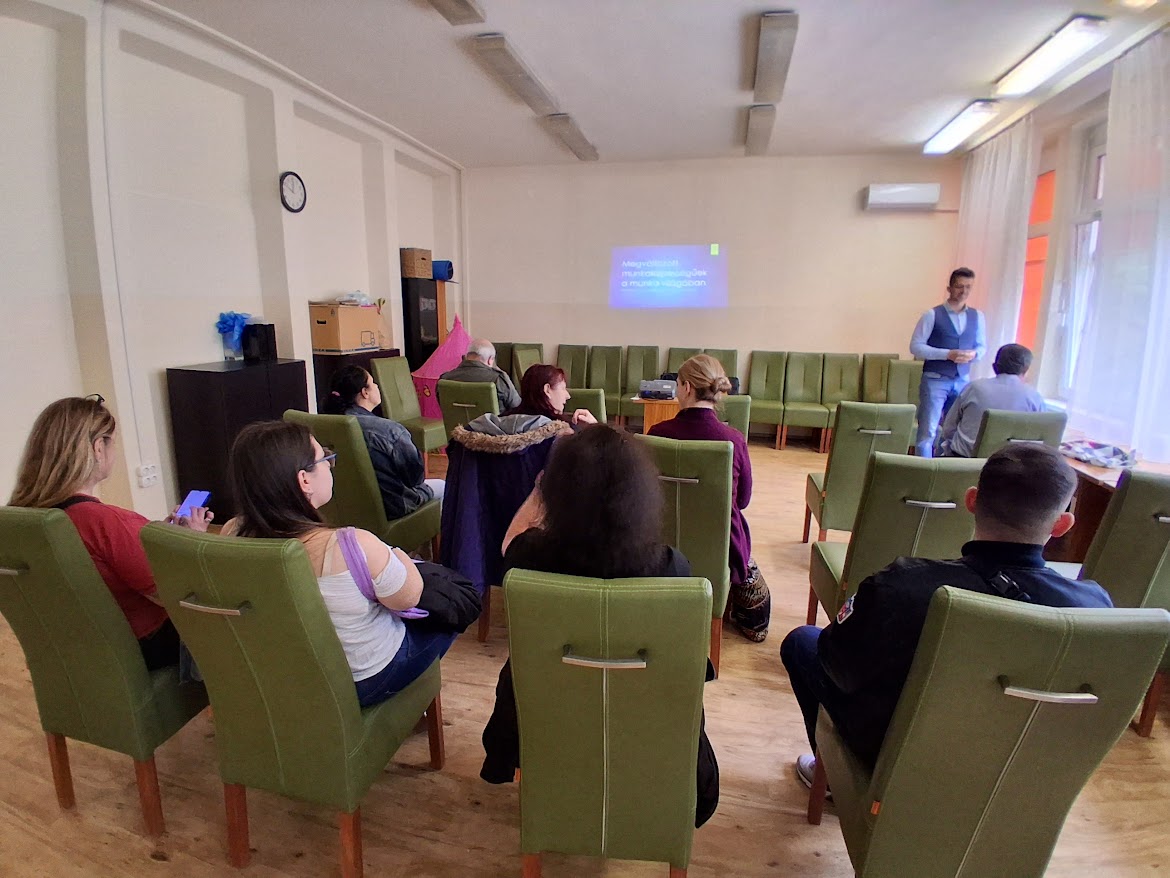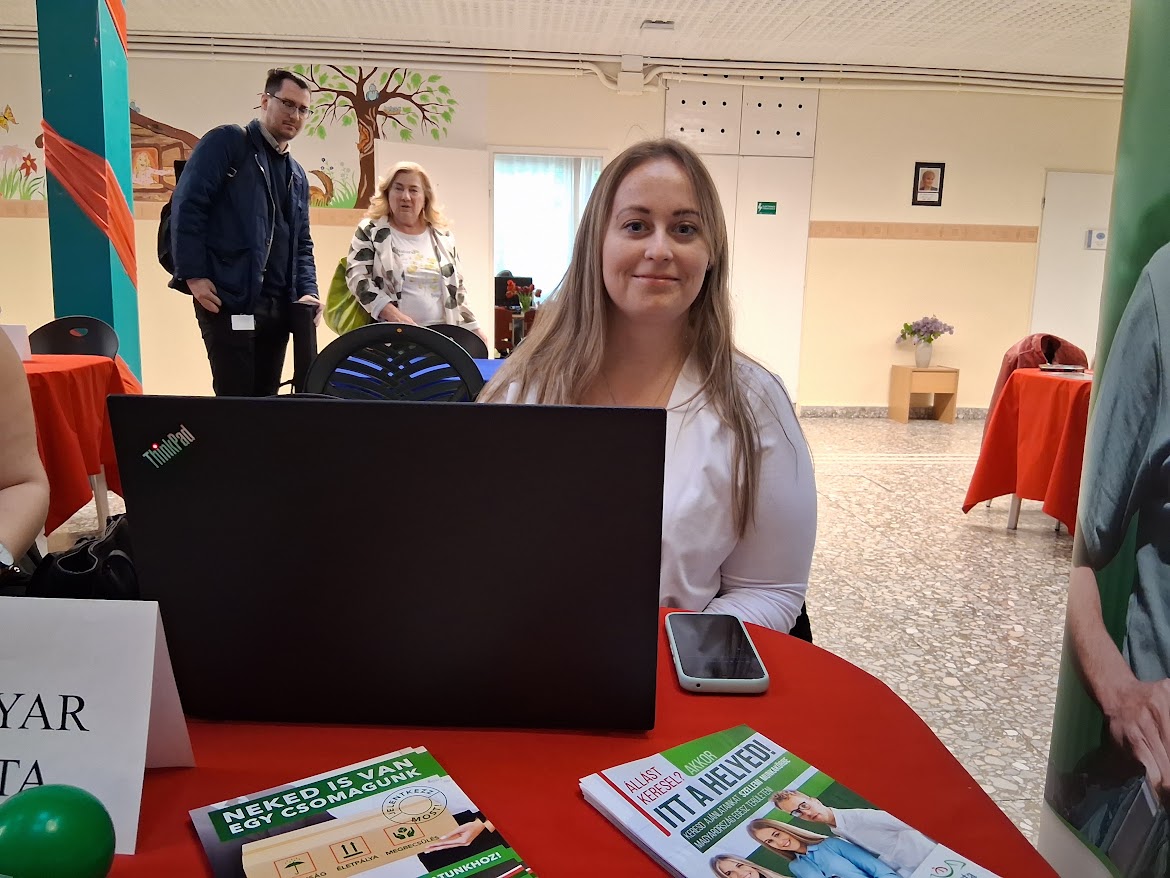 A börze ideje alatt az érdeklődők részt vehettek Dorner Attila, az Északi Szomszédok Nyugdíjas Szövetkezet szakembere által, „Megváltozott munkaképességűek a munka világában” című előadásán, és választ kaphattak kérdéseikre is. Az Állásbörze zárását megelőző percekben Dobos Angelikát, a rendező Híd Család-, és Gyermekjóléti Központ munkatársát arra kértük, hogy vonja meg a börze mérlegét.
